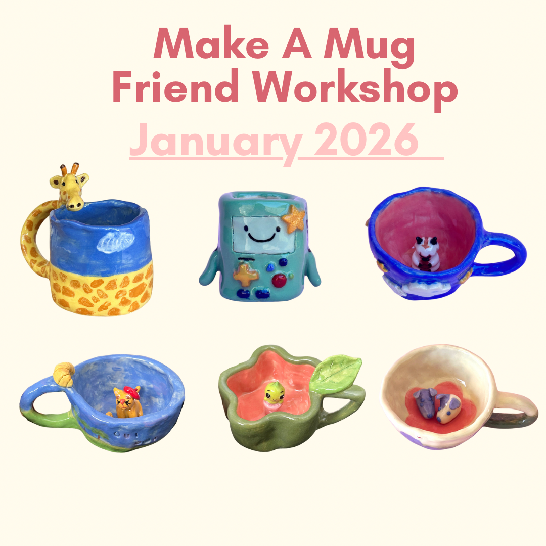 Come and join a fun and creative experience where you get to create your own ceramic mug! Not only that, you get to create a special friendly creature that will sit inside it, to keep you company during all your drinking activities!